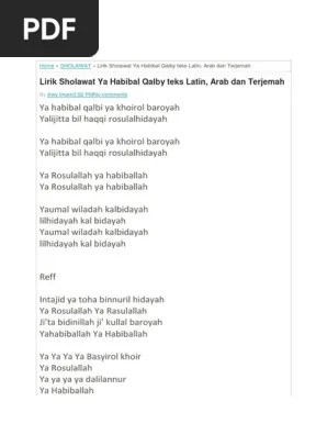 Ya habibal qolbi dengan teks arab serta arti nya. Lirik sholawat ya habibal qolbi gambar arab latin. Lagu sholawat ya habibal qolbi yang dicover sabyan gambus berisi tentang diutusnya nabi muhammad shallallahu alaihi wassalam. Kata ini menjadi semacam mantra sehingga ketika seseorang menyebutnya dalam kolom komentar, maka komentar tersebut akan mendapatkan ratusan sampai ribuan like . Judul lagu ini diambil dari bahasa arab yang secara harfiah, artinya adalah kekasih hati.